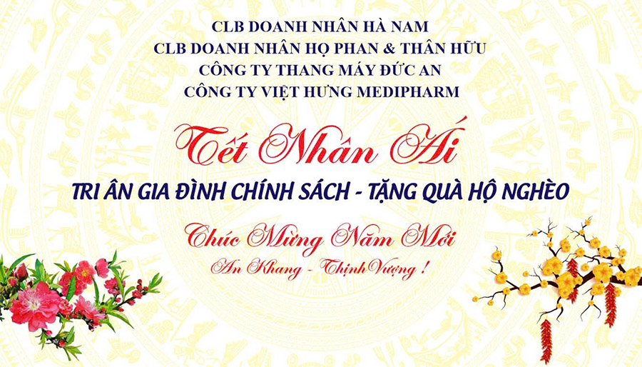 Hưởng ứng phong trào “Cả nước chung tay vì người nghèo – Không để ai bị bỏ lại phía sau” thời gian qua CLB doanh nhân họ Phan Miền Bắc và CLB doanh nhân tỉnh Hà Nam – thân hữu cùng Công Ty TNHH Thương Mại Dược Phẩm Y Tế Việt Hưng – VH Medipharm, công ty Thang máy Đức An đã huy động nhiều nguồn lực, chung tay giúp đỡ, chăm lo cho người nghèo, người có hoàn cảnh khó khăn, nhất là trong mỗi dịp Tết đến xuân về.