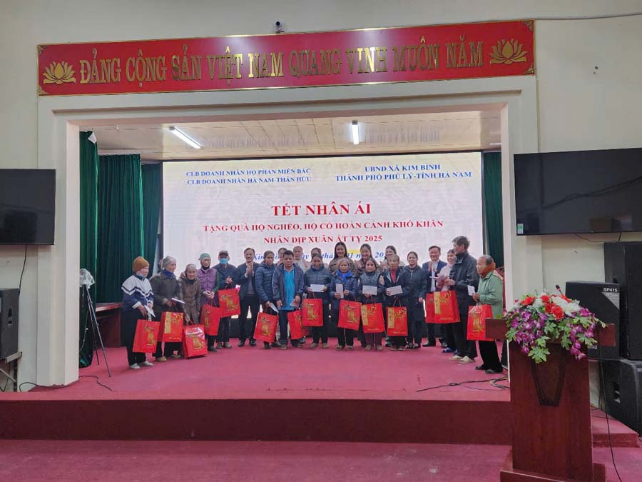 Chiều ngày 11/01/2025, CLB doanh nhân họ Phan Miền Bắc và CLB doanh nhân tỉnh Hà Nam – thân hữu cùng Công Ty TNHH Thương Mại Dược Phẩm Y Tế Việt Hưng – VH Medipharm, Công ty Thang máy Đức An phối hợp với UBND xã Kim Bình tổ chức chương trình “Tết nhân ái” tặng quà cho các hộ nghèo, hộ có hoàn cảnh khó khăn tại xã Kim Bình, thành phố Phủ Lý.