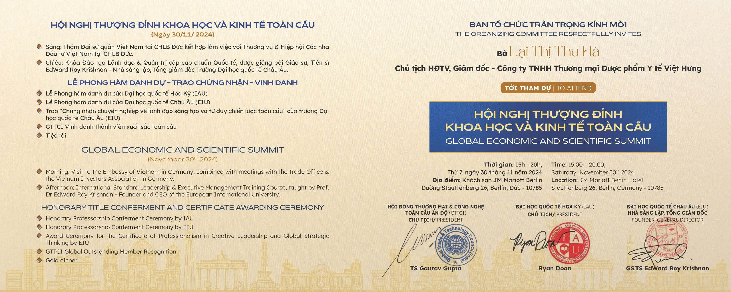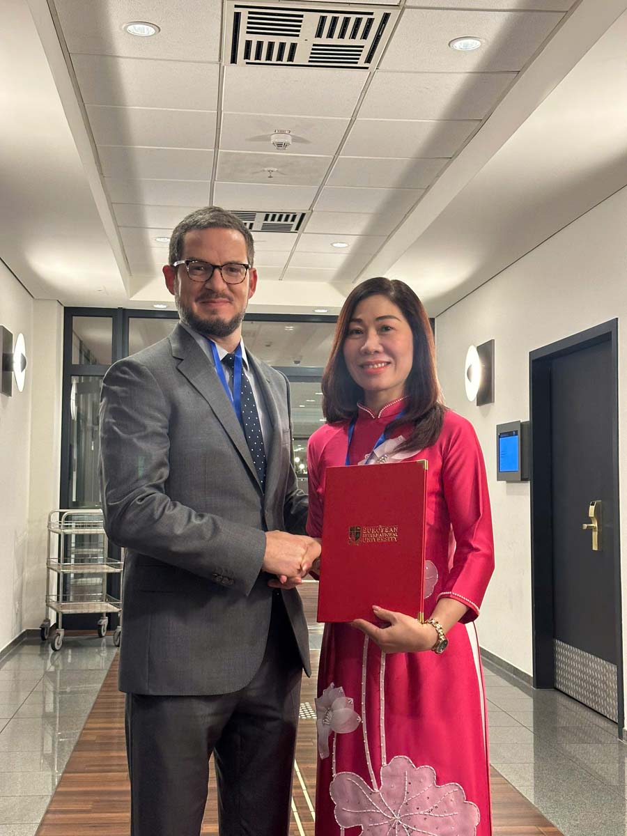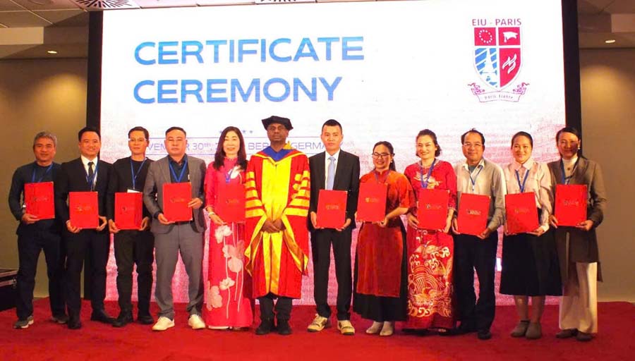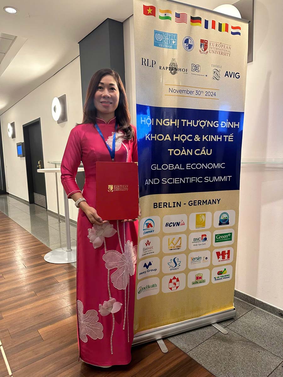 Lãnh đạo VH Medipharm tham dự hội nghị thưởng đỉnh khoa học toàn cầu tại Đức. Và được trao “Chứng nhận chuyên nghiệp về lãnh đạo sáng tạo và tư duy chiến lược toàn cầu” của trường Đại Học Quốc Tế Châu Âu (EIU).
